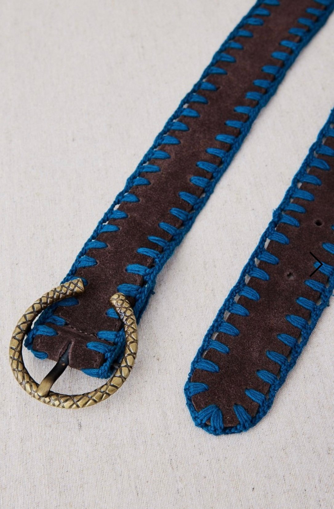 Inspiración artesanal y esencia bohemia. Este cinturón en ante con pespunte de hilo a contraste y hebilla envejecida es perfecto para marcar la cintura con personalidad.
